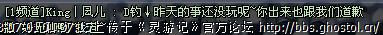 回复 8楼King丶冰文的帖子什么仇?你觉的 你们 和 我 有仇吗,你不觉得的可笑么?我只是一个还在读书的大学生,跟你们有仇?别什么事都扯到我头上,,,我现在上线就 PK 陪老婆 刷门票 3件事,话都没说,,,我玩我自已的,,跟你们那里扯上关系,,暗地里搞你们?我怎么搞? 呵呵,,,我是我,别人是别人, 管我屁事