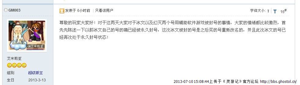GM:你回的文章 我有看 你說封永久 我們無法確定