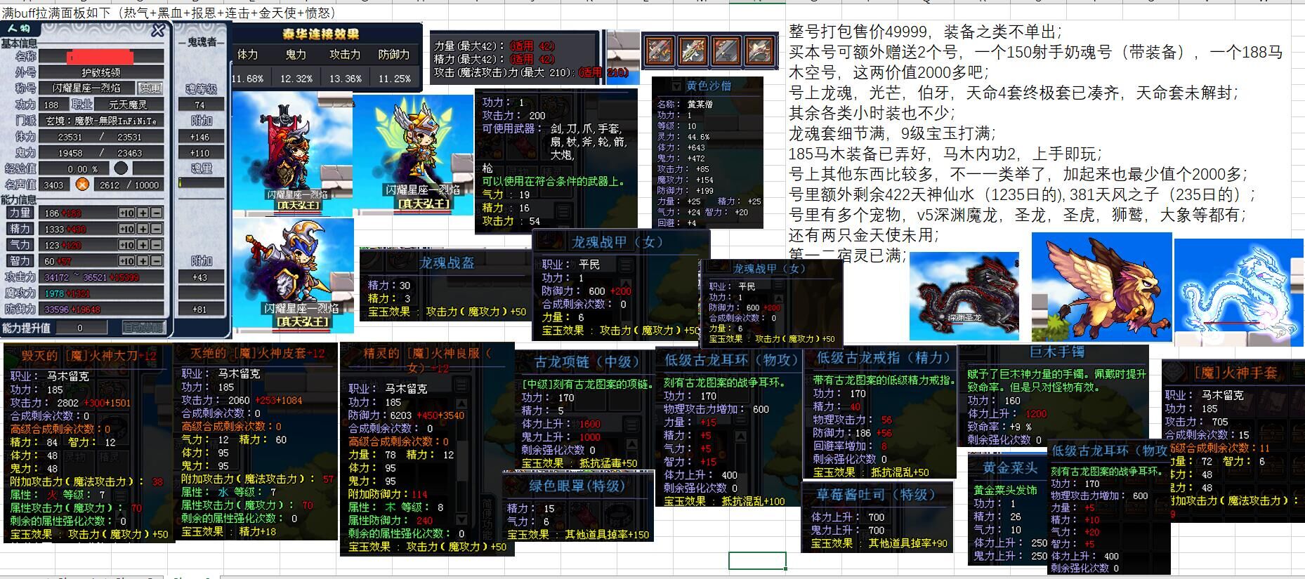 编号953:多角色,多套终极时装,部分角色带装备,售价:49999元