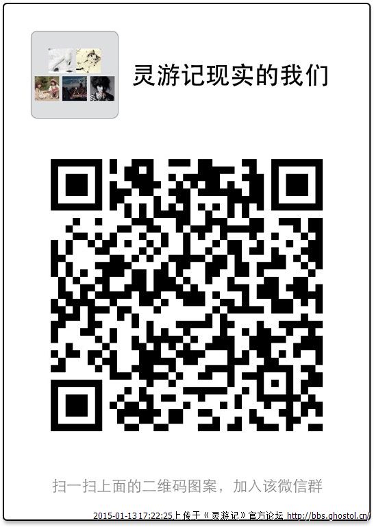 过去的种种开心与不开心都将是一段美好的过去,2006~20XX我们匆匆的走过了童年般的游记**,那些自然而然流落出来的感情却是真的,有时也会不轻易的在脑海中想起游戏某玩家的名字但ta可能对你是不开心的回忆可能是开心的伙伴,盗号的质疑人,互动的那群人马,熬夜的那么几个人,固定组队的那些屌丝,PK很不爽的死对头,门派敌意的那帮人,BBS争吵的友情帮,点点滴滴都是深埋在心里的种子。现在是我们找回在不在游戏的老玩家时候,我相信你一定也很想知道是不是群里有那么一个人还在,可能这次的召集只有几个人但我还是想尝试一下把敌人,好友通过BBS加入到微信群(wechat)现实中来。外海也好台湾也好香港也好我们以现实中为主,当然游戏即使正在继续的人也可以讨论,我们有逆天玩的有合成的经验深厚的有跨国玩的玩家,讨论也可以是现实中的生活关心,分享你现在的日子。话不多说,我留下联系方式你通过此图加入我们吧。PS:特别想说的是,麻烦客服看到此贴别误以我正在试图做广告,非也。感谢你的谅解。
