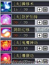 蒙眼 (加满后魔法攻击为610 打中蒙眼的几率是百分之80,这个技能打怪PK都还可以。根据就喜欢加)
