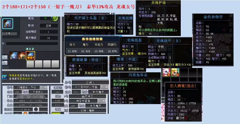 编号959:多角色女号,龙魂4件,各项物品齐全,售价:4500元