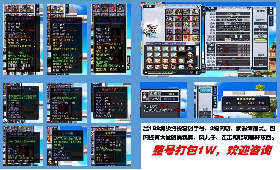 编号988:188邪射手,龙魂四件,带装备,售价:10000元