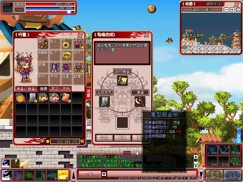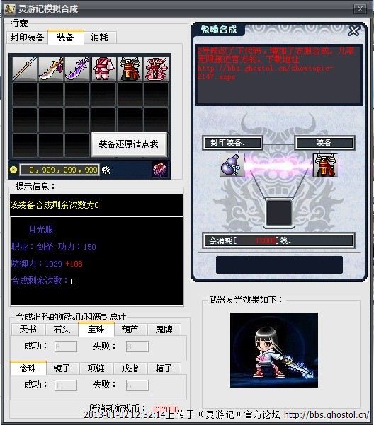 衣服:念珠、鬼牌、葫芦、宝珠,没有点装备,一次合成,+108,关键是成功率。。。衣服本身防御力1029,这算是提升10%,不过也仅此而已