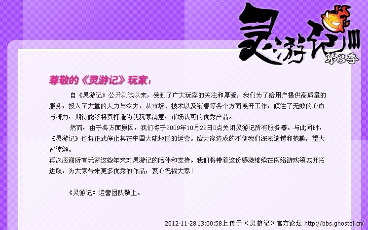 坐等国服灵游记开服(附上前任代理的灵游记关服前照片)