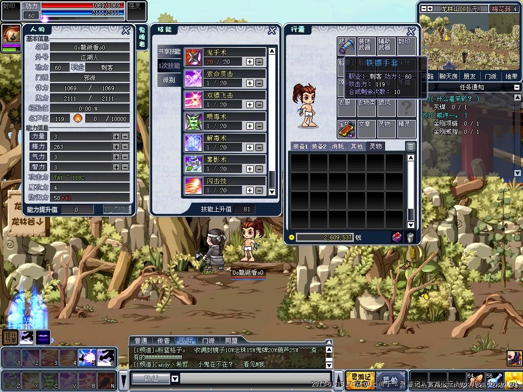 大家凑合看哈,260点全精,裸装配60手套,除了鬼手内功全部留点共81点