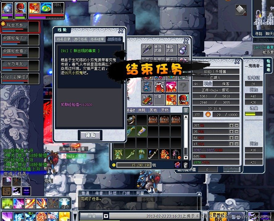 如图 开服到现在 每天坐在电脑前超过14小时 马不停蹄的按键盘 累死累活到91级 鬼灵 报恩经验牌 门派 情侣 各种能加的经验加成都弄上了 一个战报才0.5%的经验