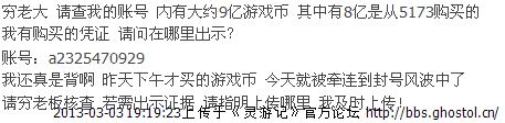 穷老板来管一下啊 这把人活活急死了都 哎 号一封 GM全不见影了 让出示证据 又不告诉在哪里出示 短消息也发了 没一个GM理会的 真是愁死人了 完全都不体会玩家内心的痛