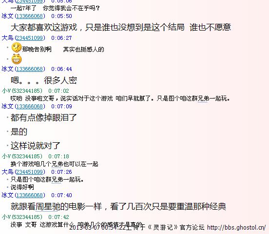我们聊了好多, 聊了好久。 说真的。刚才我一个大男人眼眶竟然湿润了。 我竟然不自觉的流泪了。 不想说什么了。。这款游戏对我们来说或许已经不是一款游戏了。。。。。有些东西。只是回忆。 兄弟。 永远。 逅宫 。 -小V (都是有血有肉的人,做事别太绝。别喷了。 谢谢你们大家。)