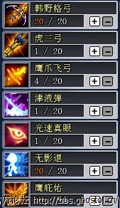 上面就是我加的技能点。我的技能点是按后期二转后加的技能,如果你前期技能加多了。没办法洗点。一转要加满60点才能上二转,所以我有3点是加在鹰爪飞弓上,你也可以选择其他技能加三点,