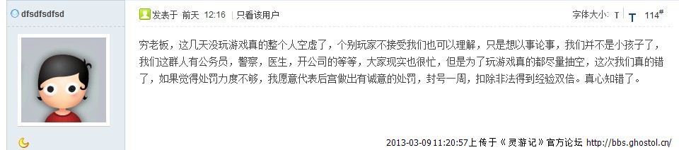 后宫老大如此的说“我愿意代表后宫做出有诚意的处罚,封号一周,扣除非法得到经验双倍。”