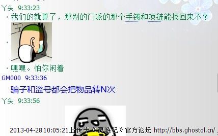 他昨天先骗我的,我没让他骗到他就骗别人了,GM你也想想,把我朋友的装备还给他们吧