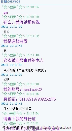 然后发现貌似逆战狂野的账号好多人都知道哇!GM都说了今天有好几个逆战狂野找他了,还有提供相同账号的,所以奇了怪了, 为什么要把自己的账号告诉很多人呢? 为什么自己的账号要让别人知道呢?为什么自己不能做到对自己账号保密呢? 有点啰嗦哦,别骂我,我就是觉得奇怪,游戏账号干嘛要告诉别人啊? 不明白哦~为了自己的账号安全,还是奉劝大家保密自己的账号吧,总之账号知道的人太多绝不会是好事!