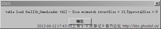 table load fail{tb_gameloader.tbl}-Size mismatch strucSize = 13,TypetotalSize =0