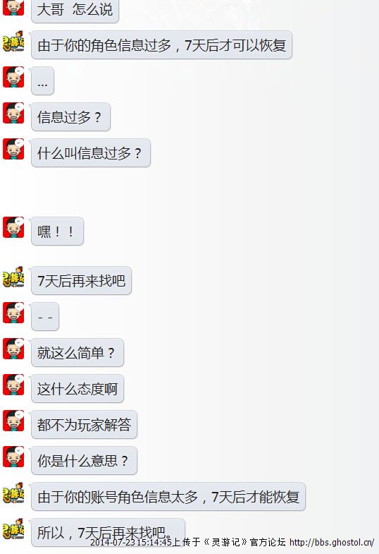 什么态度啊 就一句七天再来!! 总得让我知道什么信息多吧!! 我擦