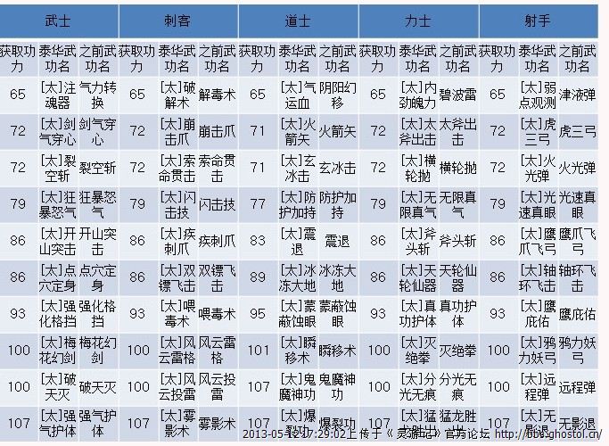泰华武功一览表: